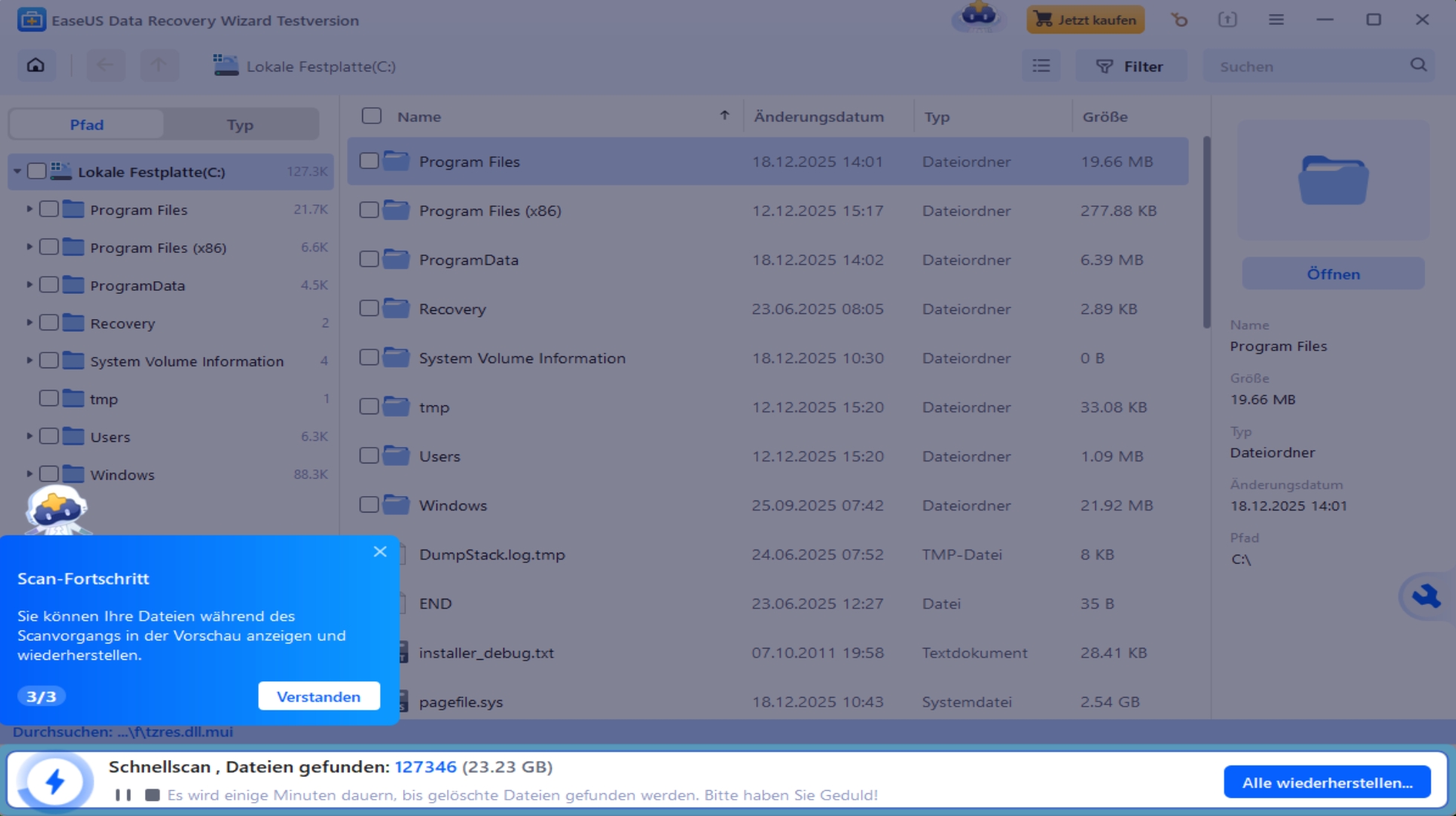Viele Programme zur Datenrettung wirken auf den ersten Blick technisch und schwer verständlich. EaseUS Data Recovery Wizard Pro verfolgt einen anderen Ansatz und nimmt Sie Schritt für Schritt an die Hand. Nach der Installation wählen Sie das Laufwerk oder den Datenträger aus, auf dem Informationen verloren gegangen sind, und starten mit einem Klick den Scan. Während des Suchlaufs analysiert die Software das gewählte Medium gründlich und präsentiert Ihnen die gefundenen Dateien in einer klar strukturierten Ansicht. Filter nach Dateitypen oder Speicherorten helfen dabei, gesuchte Inhalte schnell einzugrenzen, statt sich durch lange Listen zu kämpfen. Zusätzlich können Sie dank integrierter Vorschau einzelne Dateien öffnen, bevor diese wiederhergestellt werden, was unnötige Rücksicherungen überflüssiger Daten verhindert. Fachbegriffe und kryptische Meldungen bleiben bewusst im Hintergrund, damit sich auch weniger erfahrene Anwender sofort zurechtfinden. Sie behalten jederzeit die Kontrolle und entscheiden selbst, welche Funde dauerhaft zurück auf die Festplatte oder ein anderes Zielmedium geschrieben werden.
